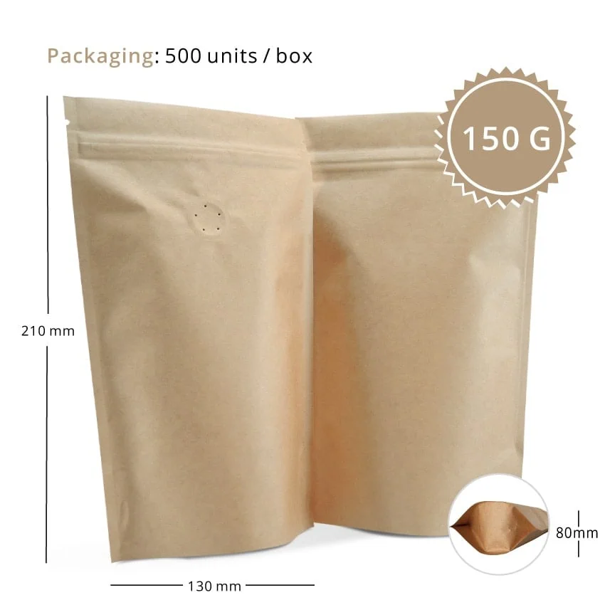 150g stand up pouches occupy the gap between taster and standard. Not everyone offers this size—which is exactly the point. Differentiate on shelf, offer more than the 100g competition, undercut the 250g price point. Strategic sizing for strategic roasters.